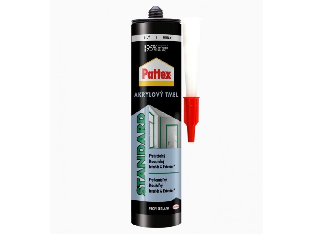 Pattex Akrylový tmel STANDARD je opravný tmel na tmelenie a vyplnenie trhlín, prasklín a škár v interiéri a exteriéri.