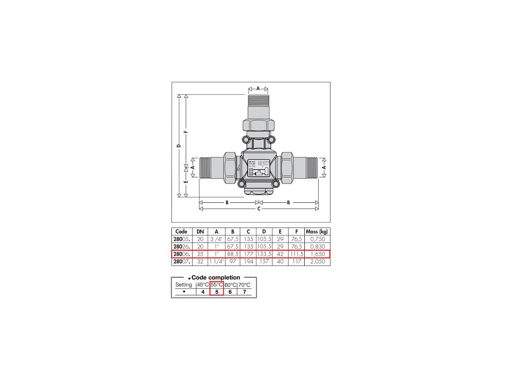 Antikondenzačný ventil s termostatickou reguláciou teploty, DN25, 55°C