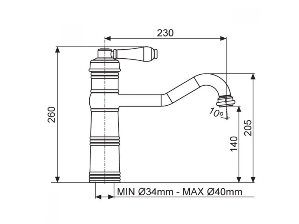 Páková drezová stojanková vodovodná batéria v retro dizajne. Je vhodná na použitie v rustikálne zariadených kuchyniach. Výtokové rameno je otočné s rozsahom otáčania 360°.