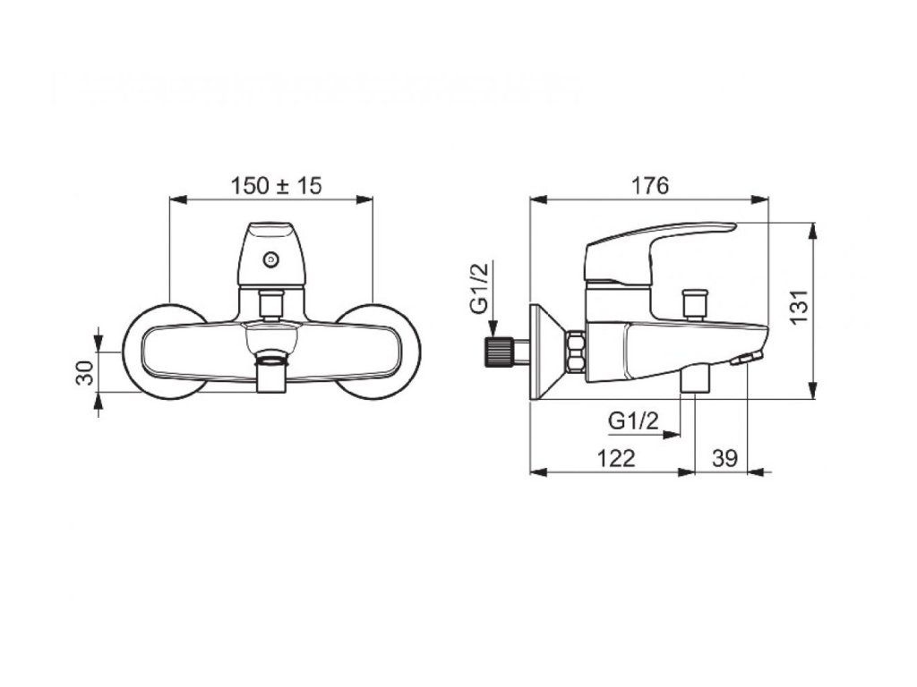 HANSAPINTO Páková vaňová batéria, DN 15 (G1/2) pre nástennú montáž