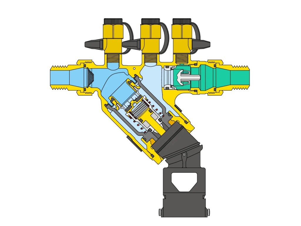 Jedná sa o hydraulické ochranné zariadenie, určené na zabránenie spätnému toku znečistenej vody do hlavného rozvodu. Chráni vodovodný systém pred spätným tlakom, spätným nasávaním a spätným tokom.