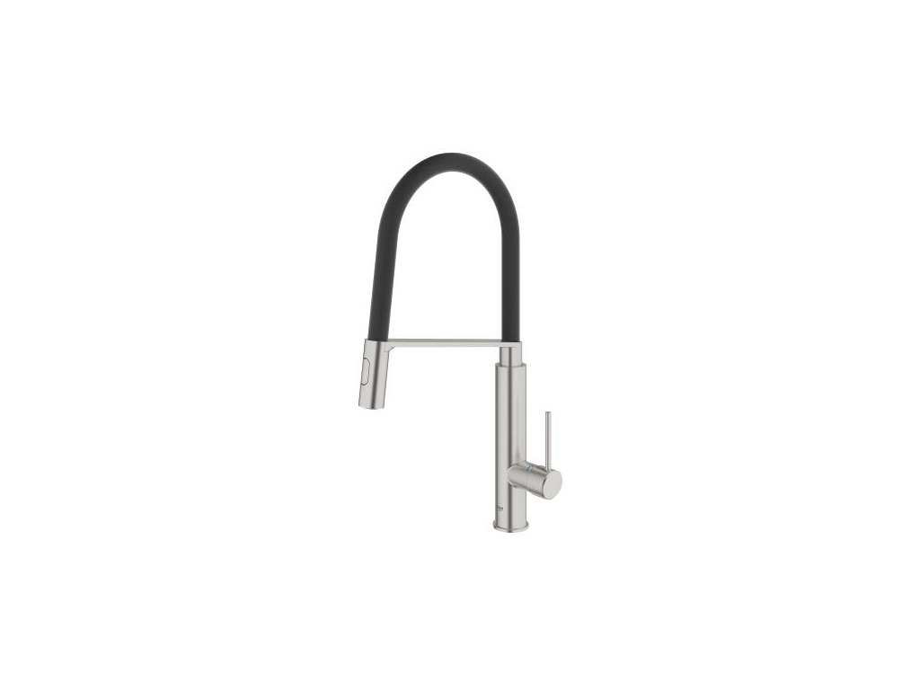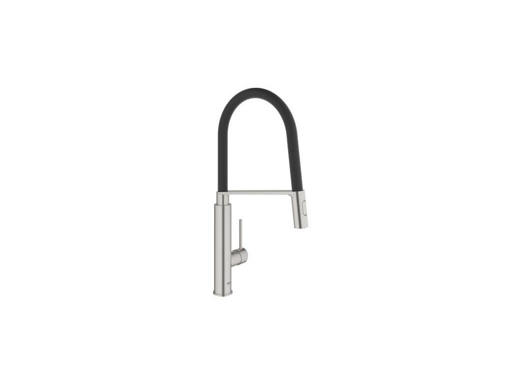 Drezová batéria CONCETTO značky Grohe prinesie do vašej kuchyne nielen elegantný chrómovo-čierny vzhľad, ale aj komfort pri každodennom používaní. Vďaka flexibilnej hygienickej hadici GROHE Flexx a kovovej sprške s dvoma typmi prúdu sa stane vaším nenahraditeľným pomocníkom pri umývaní riadu či umývaní drezu. Magnetická dokovacia stanica sa navyše postará o to, aby sa sprška vždy ľahko vrátila na svoje miesto, a otočný výtok s rozsahom 360° vám poskytne maximálnu voľnosť pri práci.