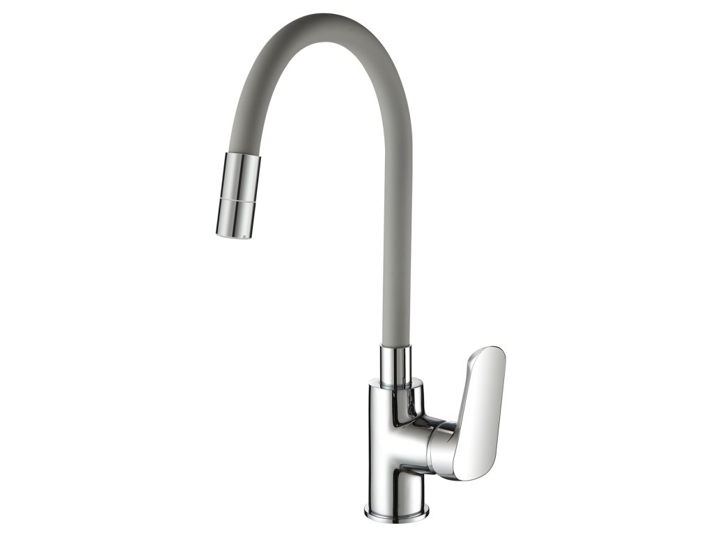 Drezová stojanková batéria YOUTH značky Aquaristo Style, so sivým flexibilným silikónovým ramenom, zakončeným 2-polohovým perlátorom.