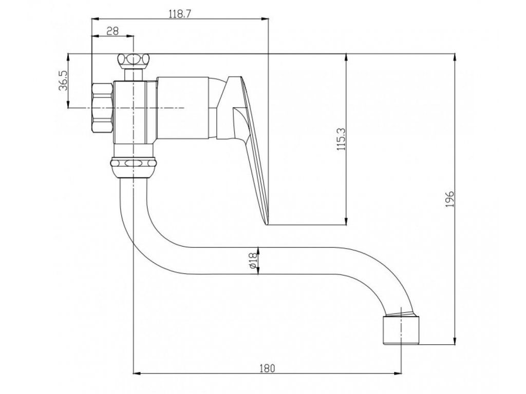 • ramienko tvaru "S" s dĺžkou 18 cm pre pohodlné umývanie riadu a napúšťanie vody;