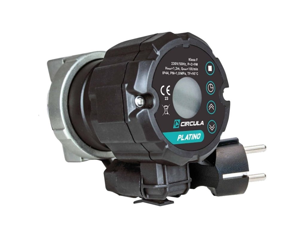 Elektronické cirkulačné čerpadlo CIRCULA PLATINO značky Arka je určené na cirkuláciu teplej úžitkovej vody (TÚV) v rodinných domoch, bytoch aj menších prevádzkach. Čerpadlo je vybavené ovládacím panelom a integrovaným teplotným snímačom, vďaka čomu pracuje efektívne a presne podľa aktuálnej teploty vody. Elektrický kábel so zástrčkou je súčasťou balenia.