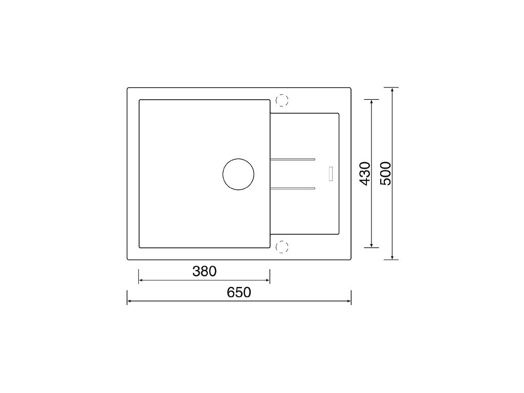 Vonkajšie rozmery drezu: 650 x 500 mm.