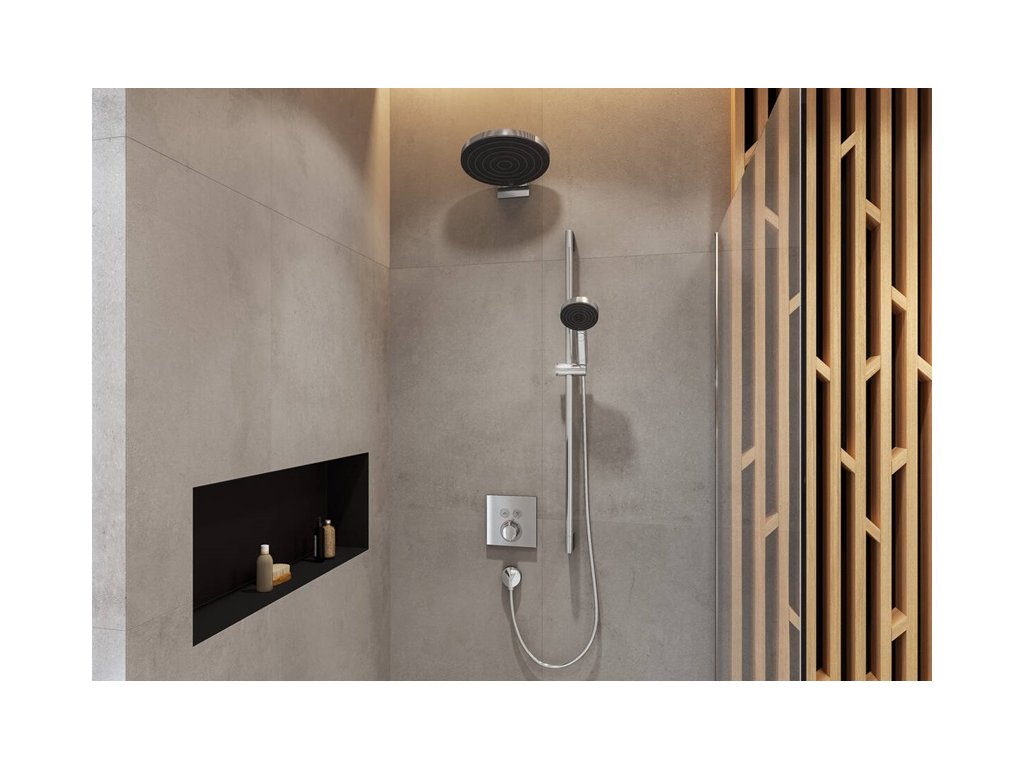 Hlavová sprcha PULSIFY S s nástennou či stropnou montážou. S guľovým kĺbom umožňujúcim nastavenie uhlu hornej sprchy.