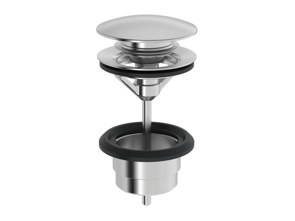 Tlačný uzáver odpadu - pileta HANSA je praktické riešenie pre štandardné umývadlá, ktoré umožňuje jednoduché otváranie a zatváranie jedným stlačením. Systém Push-Open funguje bez tiahla, vďaka čomu pôsobí čisto a minimalisticky. Uzáver je vyrobený z kvalitnej mosadze s povrchovou úpravou v brúsenom oceľovom vzhľade, ktorá sa ľahko kombinuje s modernými kúpeľňovými batériami.
