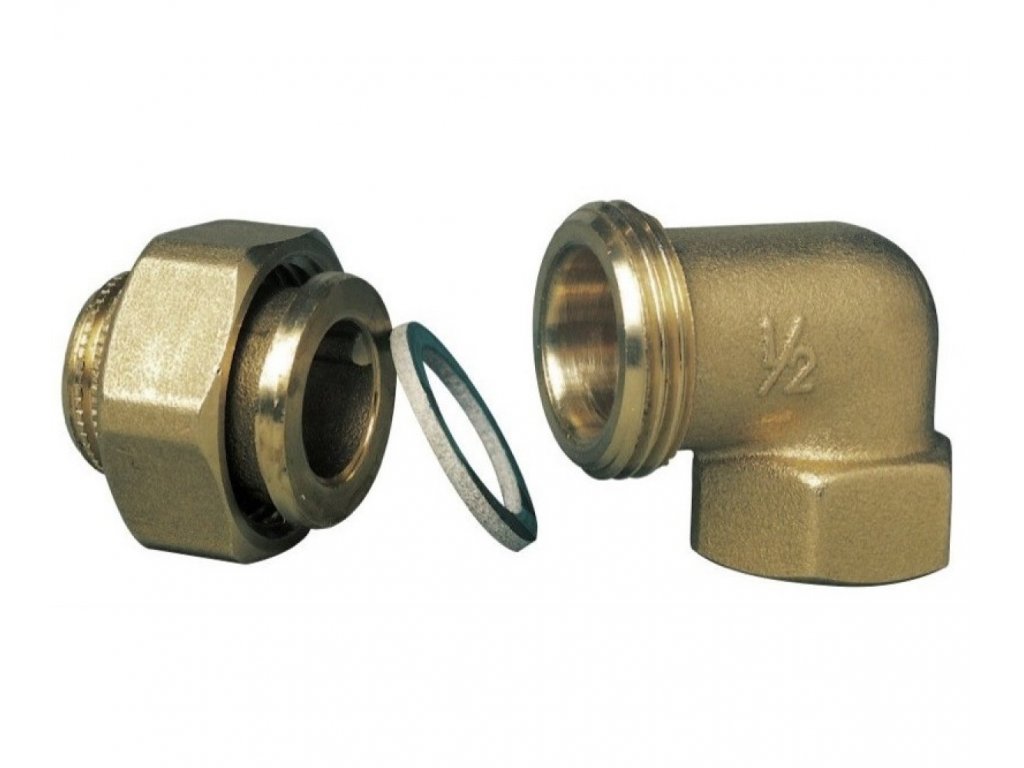 Mosadzná radiátorová závitová spojka rohová, ploché tesnenie TEMAFEST 1".