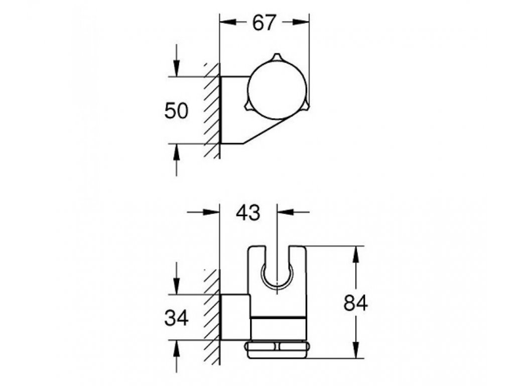 Nastaviteľný nástenný držiak ručnej sprchy nemeckej značky Grohe.