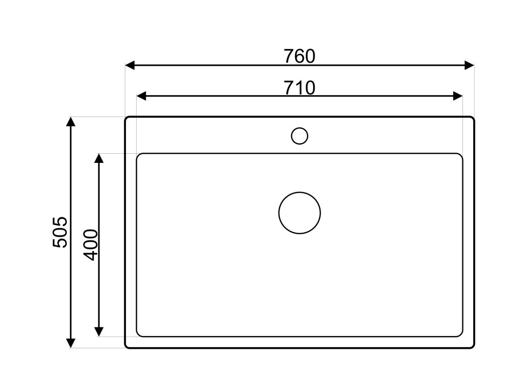 Vonkajšie rozmery drezu: 760 x 505 mm.