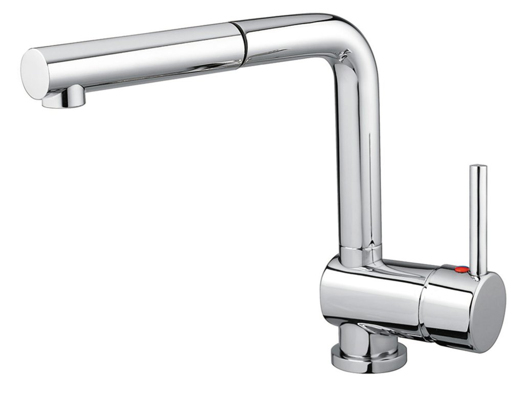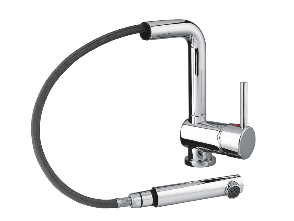 S výsuvnou sprchou s perlátorom, bez prepínača - iba prúd.