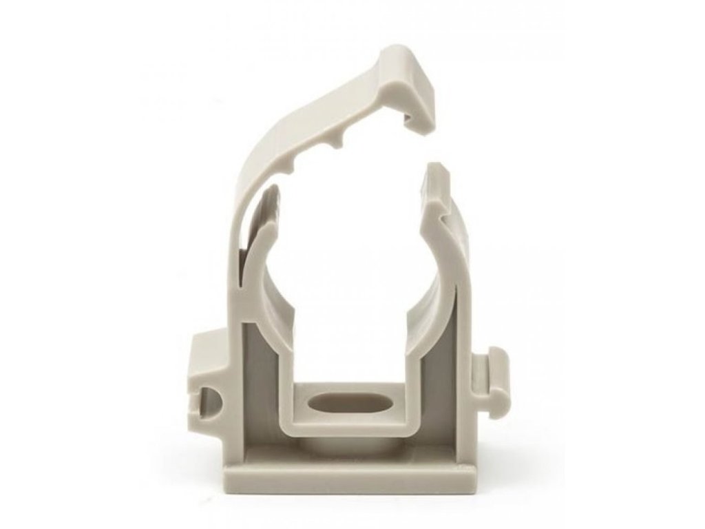 Príchytka na potrubie, s klipom, šedý plast - 25mm
