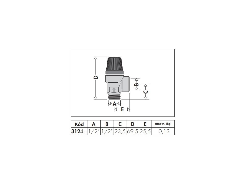 Poistný ventil MF 1/2" nastavenie tlaku 3,5 bar, PN 10, T=+5 až 110 °C