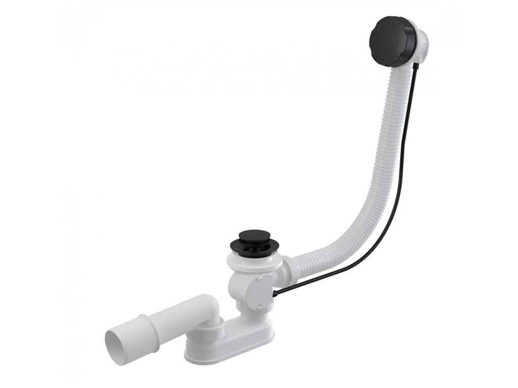 Vaňový sifón automat komplet, malá zátka, matná čierna - dĺžka 800mm