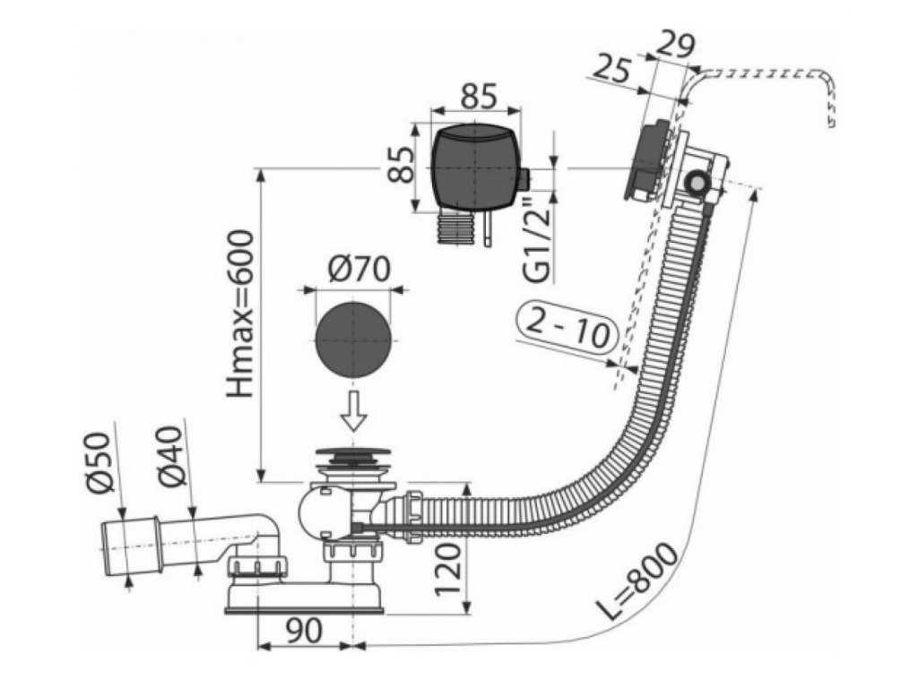 Dĺžka vaňového sifónu: 800mm.