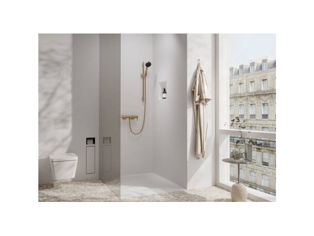 Elegantná, spoľahlivá a navrhnutá pre tých, ktorí milujú čisté línie a intuitívne ovládanie. Sprchová batéria TECTURIS E renomovanej značky Hansgrohe v povrchovej úprave brúsený bronz je dokonalým doplnkom modernej kúpeľne – štýlová na pohľad a funkčne premyslená do posledného detailu.