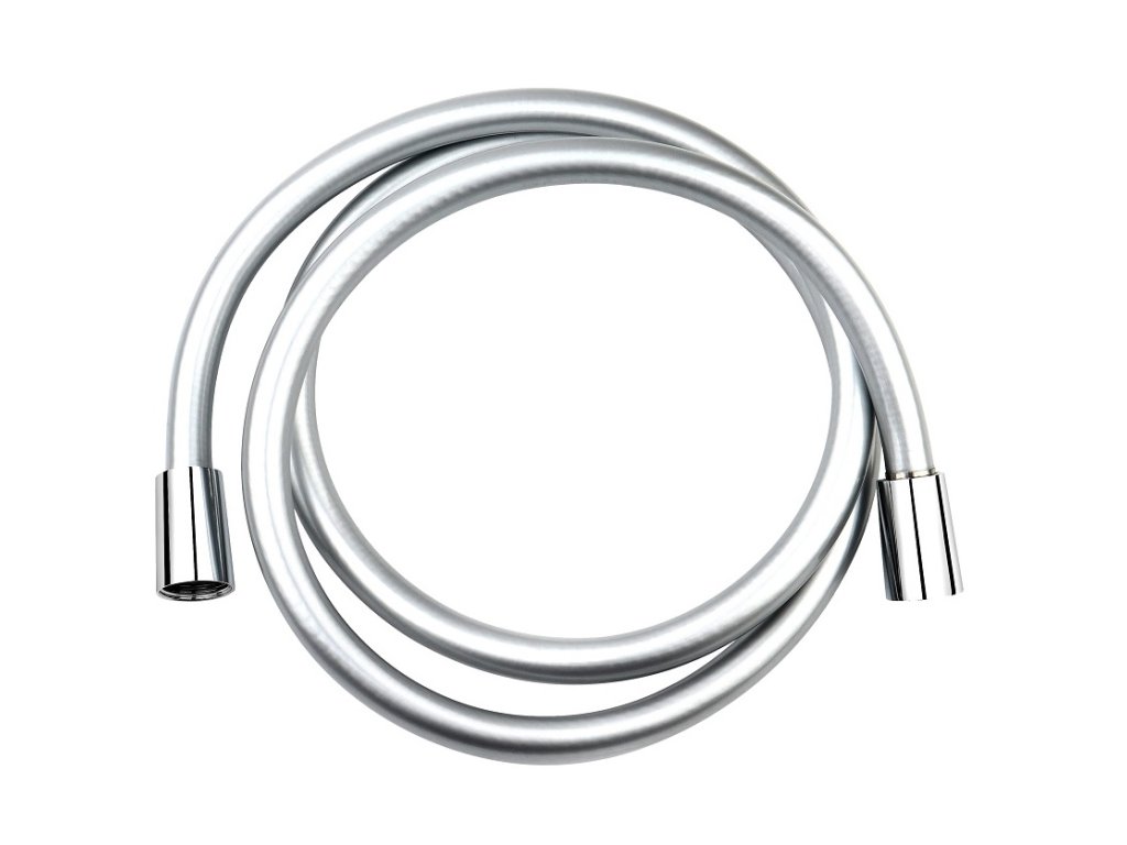 • plastová sprchová hadica s dĺžkou 1500 mm, vybavená dvomi otočnými koncovkami, metalicky lesklý povrch.
