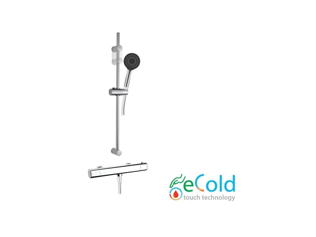 • termostatická batéria BLAZAR s technológiou eCold Touch, pre dve odberné miesta (horný vývod pre sprchovú tyč, dolný pre ručnú sprchu),