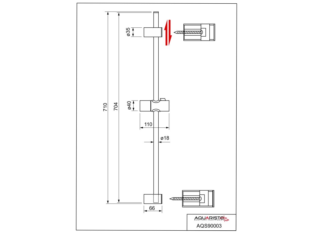 • plastová sprchová tyč RIVA BLACK, dĺžka 700 mm, s posuvným držiakom ručnej spršky;