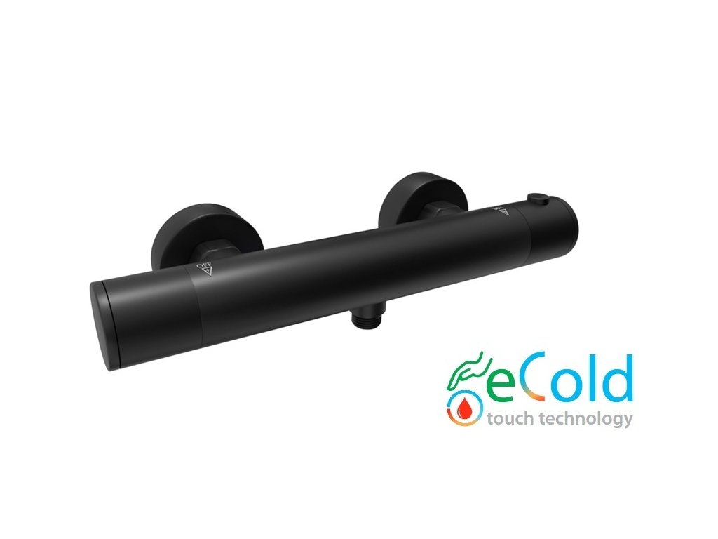 • termostatická batéria BLAZAR BLACK s technológiou eCold Touch, pre 1 odberné miesto (spodný vývod pre sprchovú hadicu),