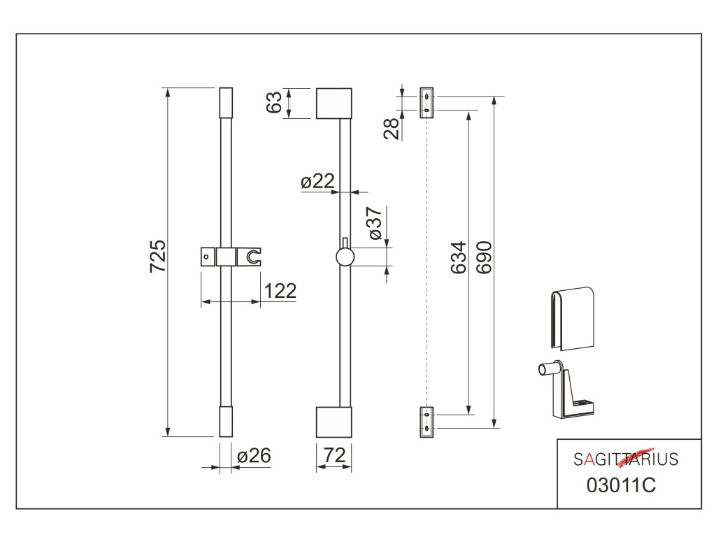 • sprchová tyč HELGA plastová, 700 mm s posuvným držiakom ručnej sprchy-jazdcom, vyrobeným z mosadze