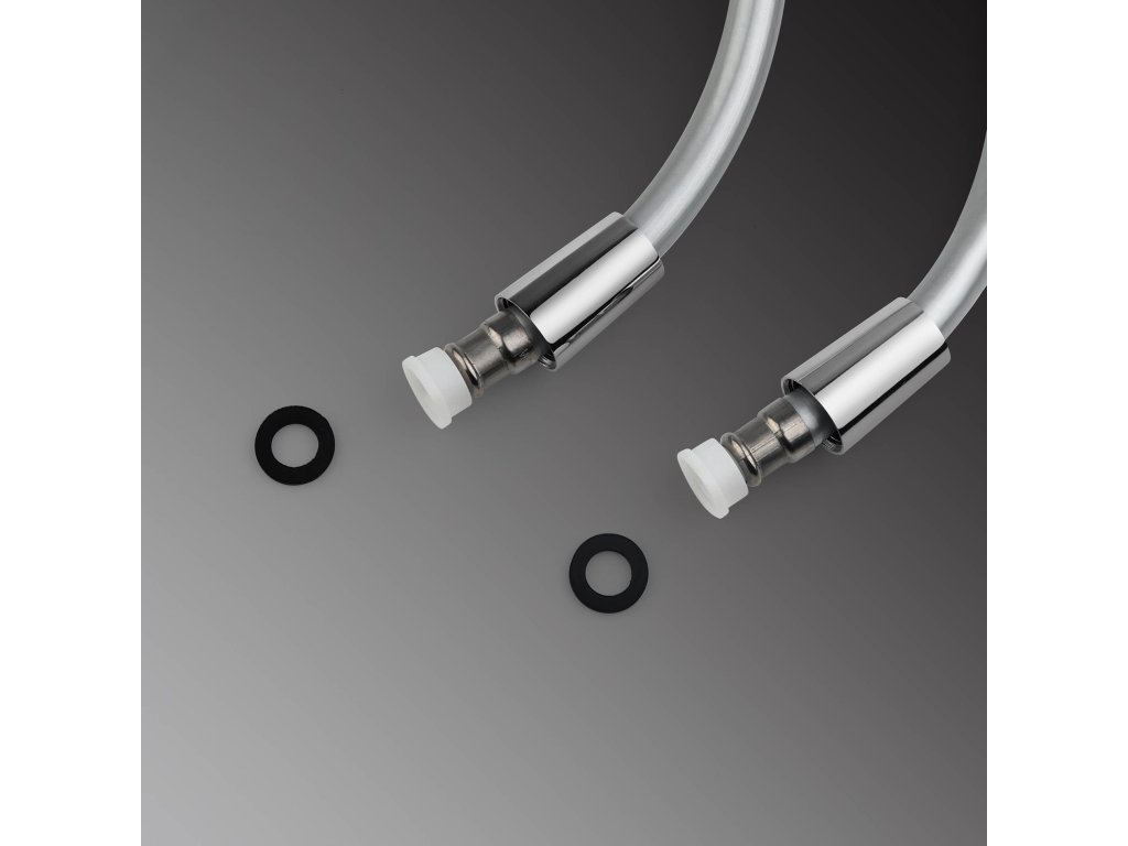 • sprchová hadica plastová, dĺžka 150 cm - metalická lesklá - dve otočné koncovky
