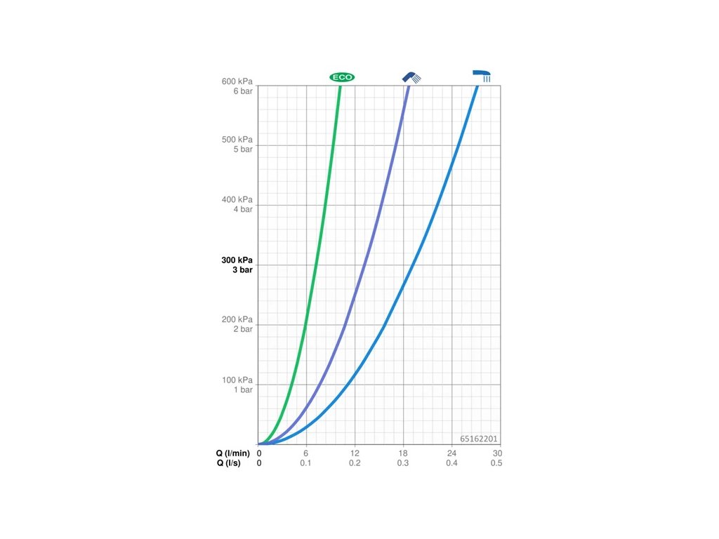 • ručná sprcha 3-polohová: normálny prúd, masážny prúd, dážď. Priemer sprchy: 110 mm. Prietok: 12 l/min.