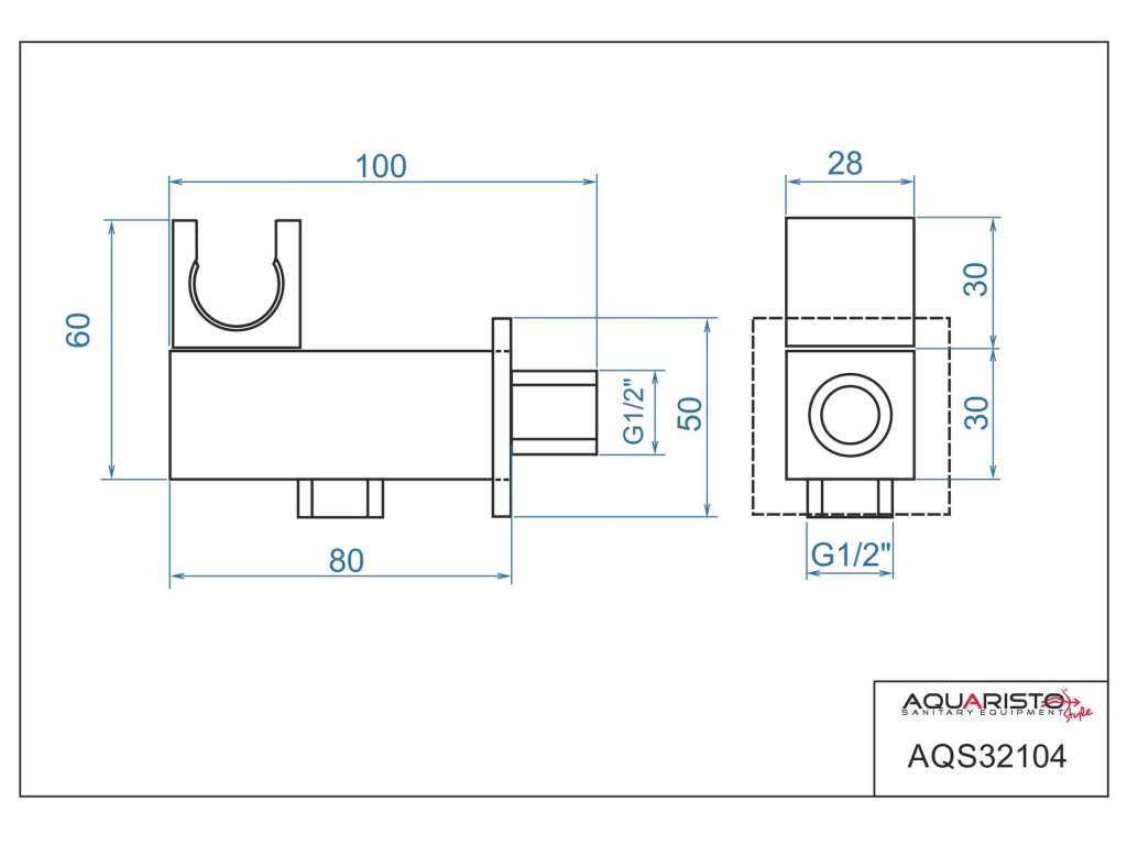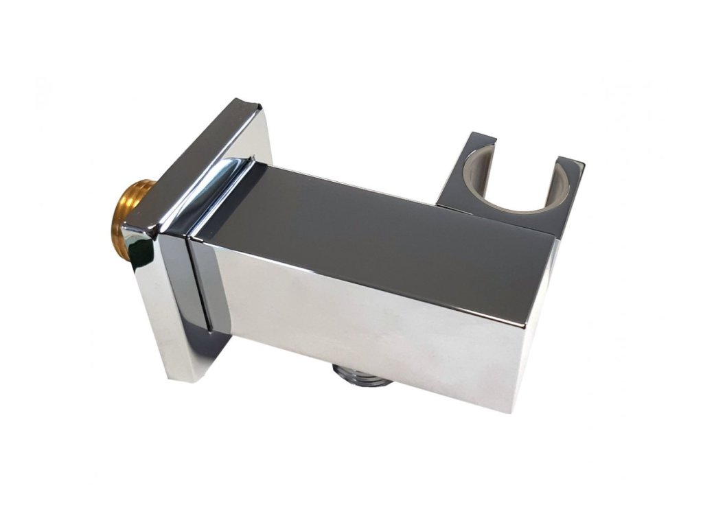 Kovová stenová prípojka na sprchu k podomietkovej batérii. Súčasťou prípojky je držiak ručnej sprchy. Úchyt sprchy je otočný.