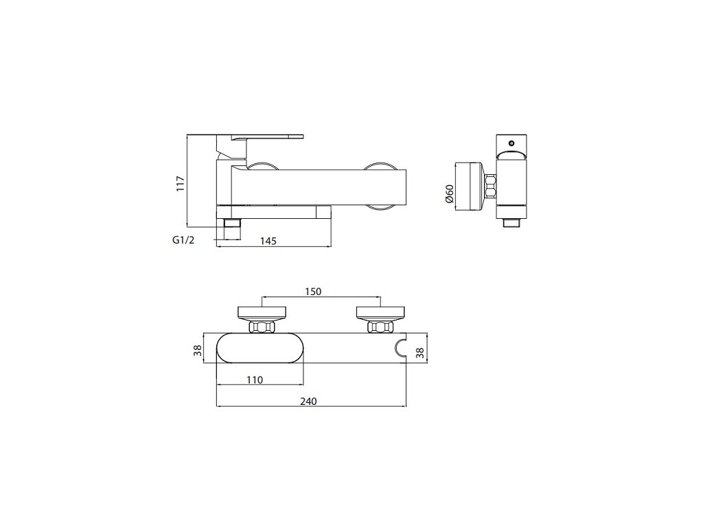 Vaňová batéria s príslušenstvom: so sprchovou hadicou, ručnou sprchou a držiakom ručnej sprchy. Súčasťou balenia sú etážky aj krycie ružice. Prepínač režimu vaňa/sprcha nie je aretovateľný.