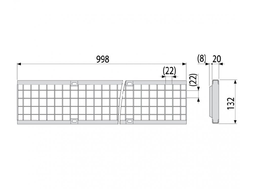 Vonkajší žľab 100mm s kovovým rámom a pozinkovaným roštom C250