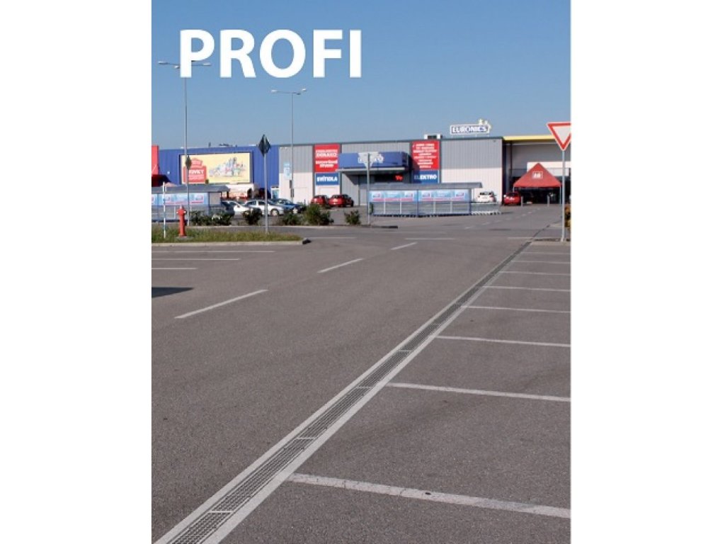 Pre odvodnenie profesionálneho parkovania pre osobné autá, peších zón, postranných pásov komunikácií a priľahlých chodníkov