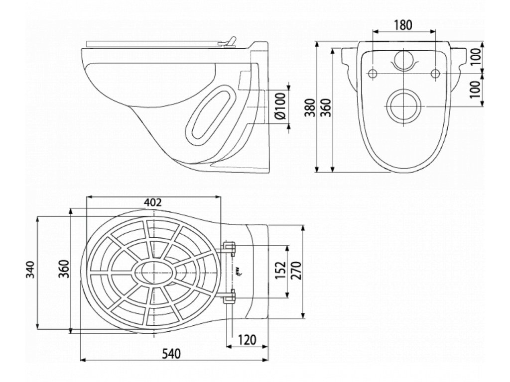 WC misa s mriežkou pre výlevky s možnosťou pre pripojenie na splachovacie systémy