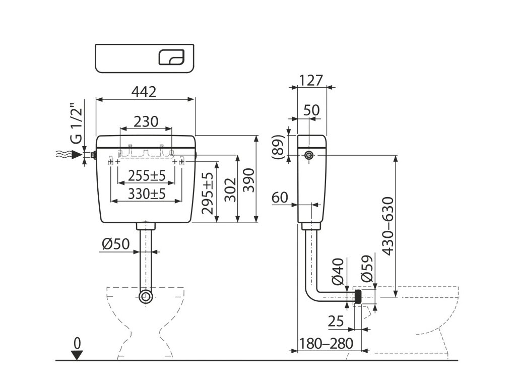 Pri inštalácii na vysoko položenú nádržku je funkčné iba veľké spláchnutie 6 – 8 l