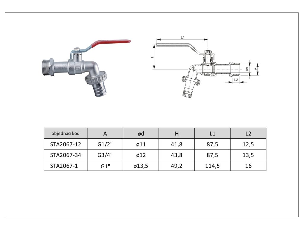Záhradný ventil značky STA, s napojením G1/2", je spoľahlivým riešením pre jednoduché a bezpečné uzatváranie prívodu vody v záhrade, dielni aj domácnosti. Vďaka praktickej prípojke na hadicu umožňuje pohodlné napojenie. Mosadzná konštrukcia zaručuje dlhú životnosť aj pri vystavení vlhkosti a poveternostným podmienkam. Ventil je určený na studenú aj teplú vodu a ďalšie neagresívne médiá, pričom si zachováva spoľahlivú funkčnosť aj pri vyšších tlakoch a teplotách.
